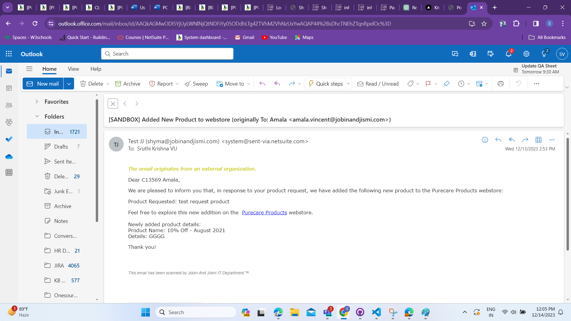 A new email template is created with the new prodcut details from the product request list.