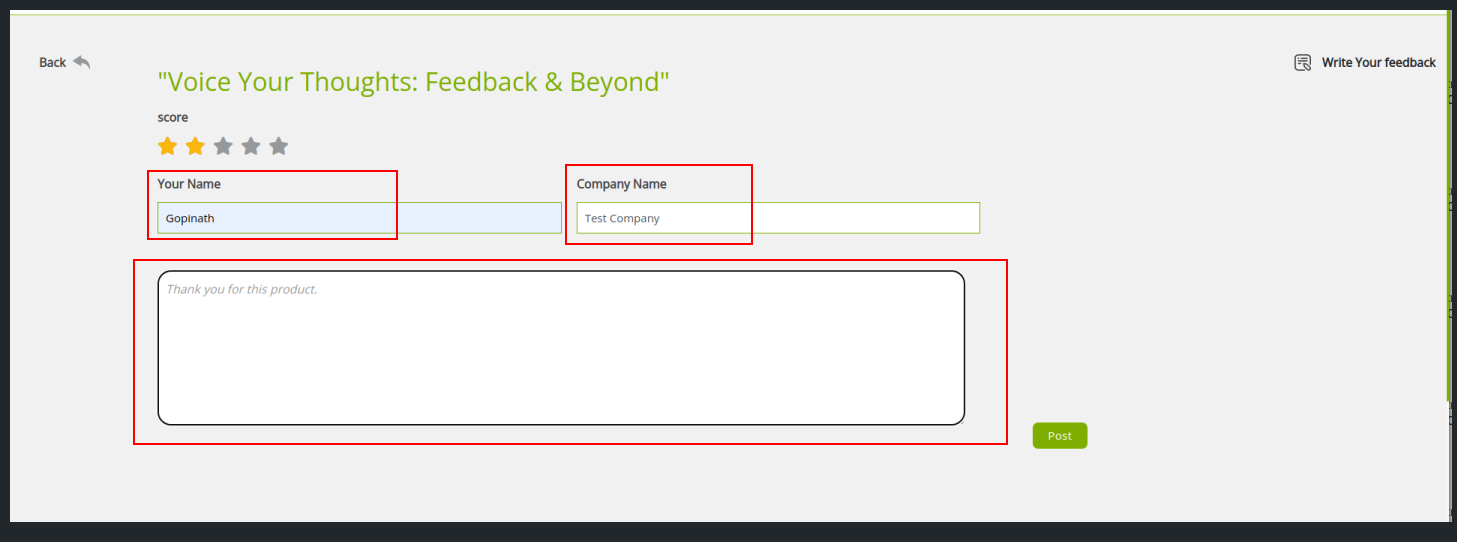 Website review form: