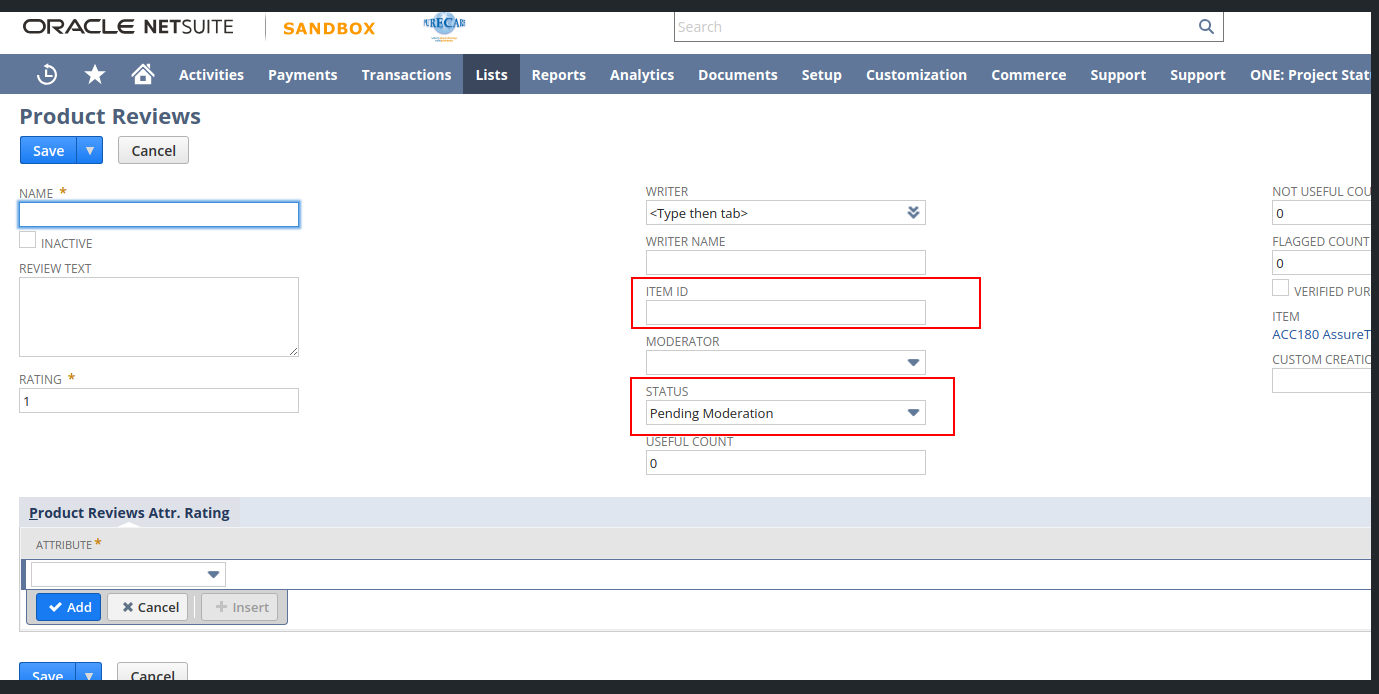 Steps to update review from netsuite: